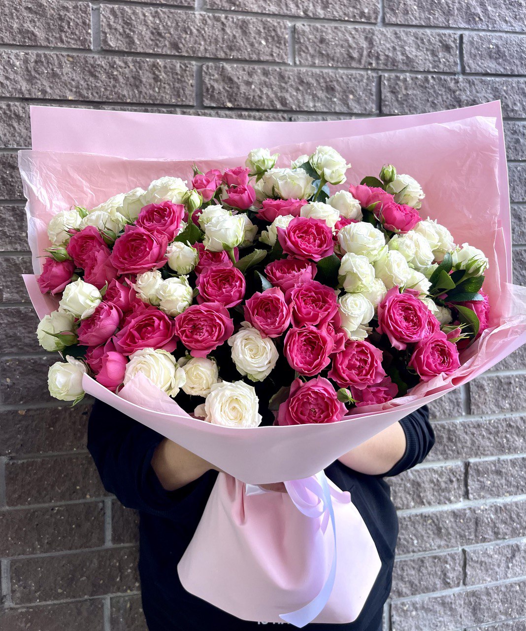 Нежный микс из кустовых роз и белоснежной эустомы , покорит сердце каждой женщины. Такой букет прекрасно подчеркнёт ваш вкус и станет замечательным цветочным подарком на любой праздник.