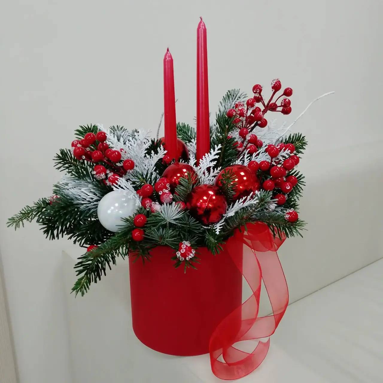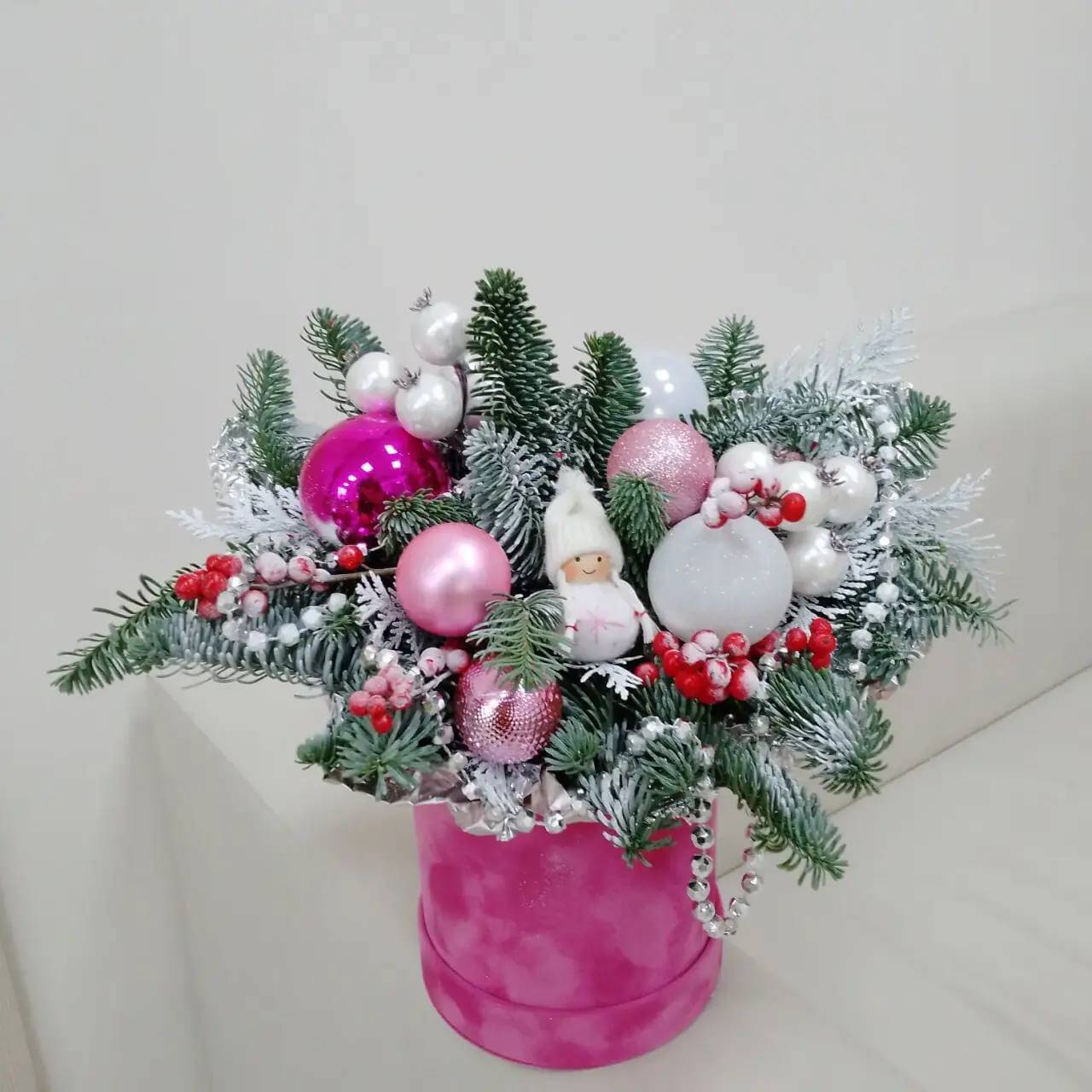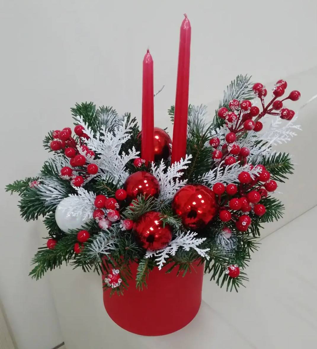 Сочетание ароматной хвои и яркого новогоднего декора создаёт праздничное настроение. Такая композиция станет прекрасным украшением для любого интерьера, добавляя в него немного зимнего волшебства и природной изысканности. Прихватите с собой такой зимний подарок, отправляясь в гости к друзьям. Порадуйте своего близкого человека или коллегу.