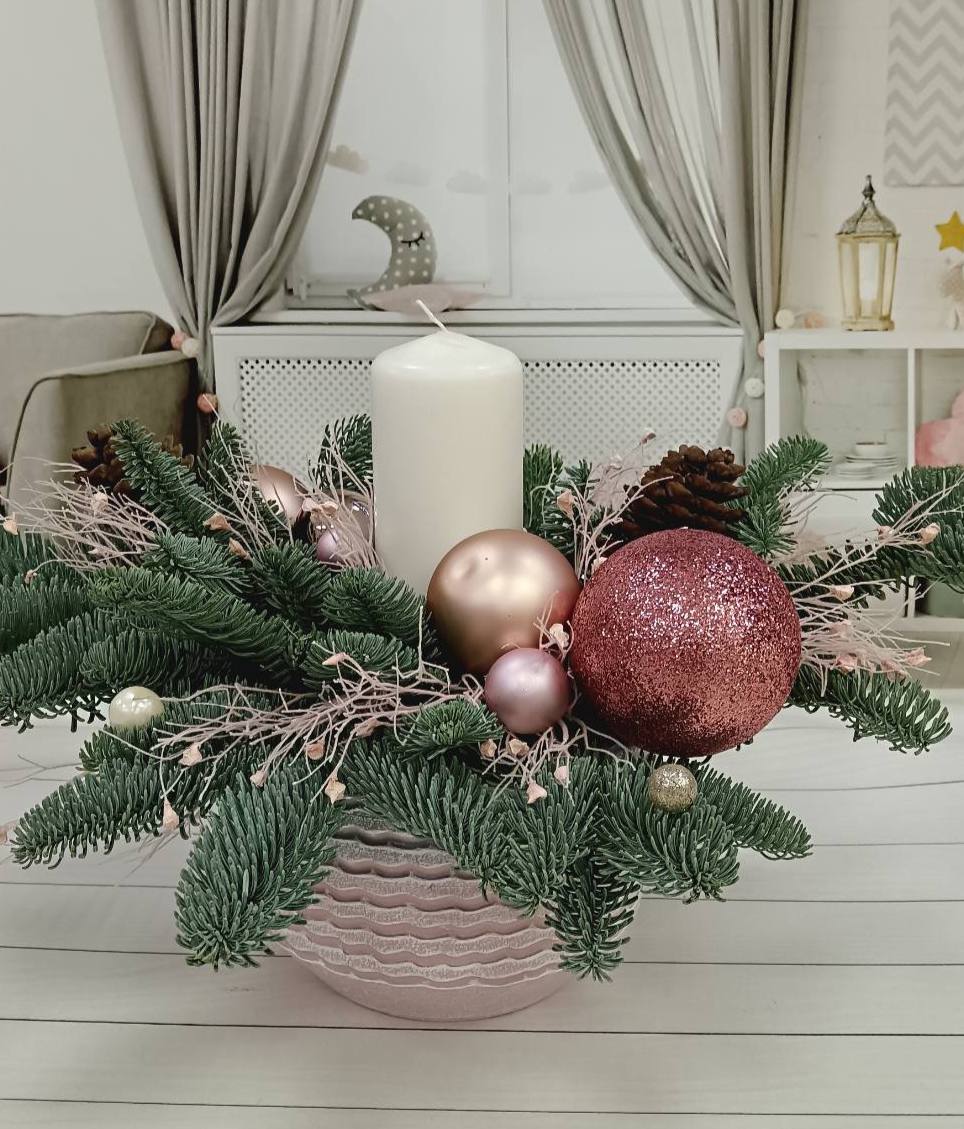 Дух зимнего волшебства, аромат датской ели завораживает . Настоящая новогодняя сказка в вашем интерьере! Эта композиция станет не только великолепным украшением вашего дома, но и чудесным подарком, который принесет радость и тепло в сердца близких.